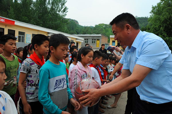 5月31日上午,開元集團(tuán)(香港)控股有限公司14位員工驅(qū)車近100公里,來到洛寧縣郭村小學(xué),參加由洛陽(yáng)市委統(tǒng)戰(zhàn)部發(fā)起的愛心助學(xué)活動(dòng),為山區(qū)孩子們送去了學(xué)習(xí)用品、體育用品等愛心助學(xué)物資。市委統(tǒng)戰(zhàn)常務(wù)副部長(zhǎng)張麗君、市委統(tǒng)戰(zhàn)部紀(jì)檢員張玉紅、開元集團(tuán)副總經(jīng)理?xiàng)畲荷?、總?jīng)理助理叢萬通等參加了捐贈(zèng)儀式。
