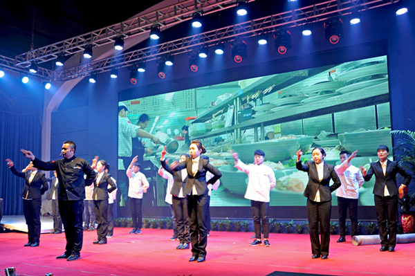 迪尼斯酒店員工自編自演的傳統(tǒng)曲藝《三句半》,用喜聞樂見的喜劇形式表達(dá)了集美迪尼斯酒店的服務(wù)宗旨和經(jīng)營理念。